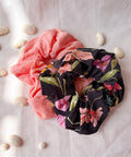 The Black Floral Scrunchie is a handmade accessory crafted from soft, breathable viscose. Its dark, elegant base is accented with delicate floral patterns, creating a timeless piece that’s gentle on hair while adding a touch of understated charm to any look.