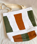 Our quilted tote bags are made with upcycled linen offcuts from our friends at Titch! Each bag is different, sharing the unique creativity of the survivor who crafted it!