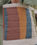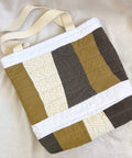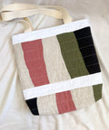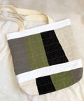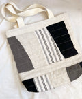Our quilted tote bags are made with upcycled linen offcuts from our friends at Titch! Each bag is different, sharing the unique creativity of the survivor who crafted it!